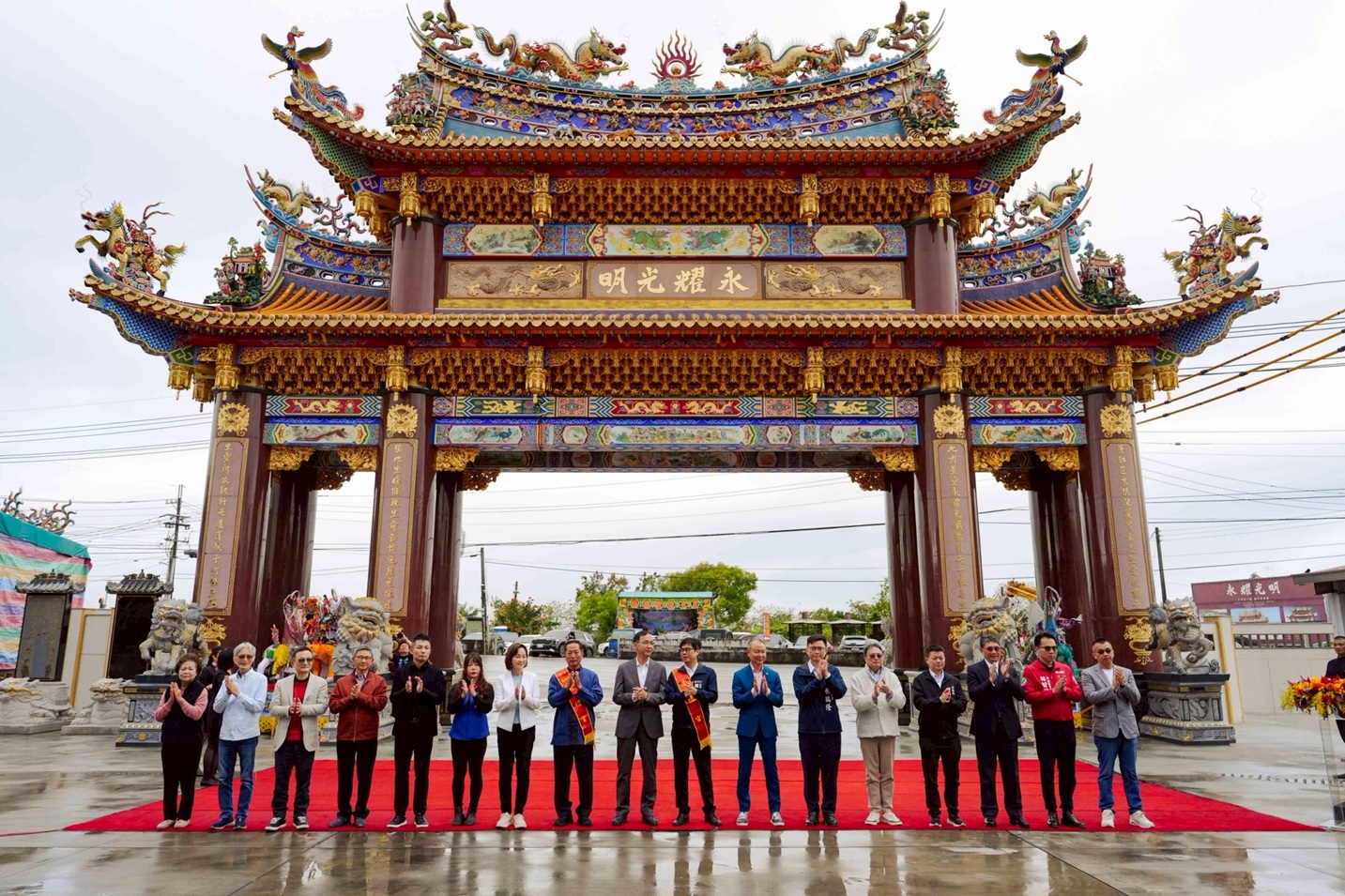 此次揭匾開光大典,同步揭掛由邵永添總裁親筆題寫之匾額與對聯。匾額「永耀光明」,象徵玄天上帝如北方星辰,長照世間,指引眾生。八聯對句自北方星空之光寫起,延伸至玄天上帝斬妖伏魔、護國愛民的神威與德行,最終收束於「永頂天、恆立地」的天地對應之境,將信仰、宇宙秩序、生命韌性與人間責任,層層鋪展,凝鍊為一組屬於這座神樓的精神銘文。